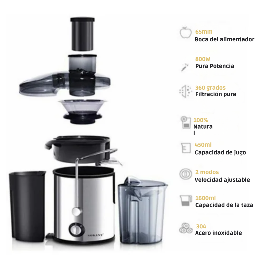 Extractor de Jugos SOKANY 1.6 L de 800w | Jugo rico, fresco y natural en segundos, sin esfuerzo 👌
