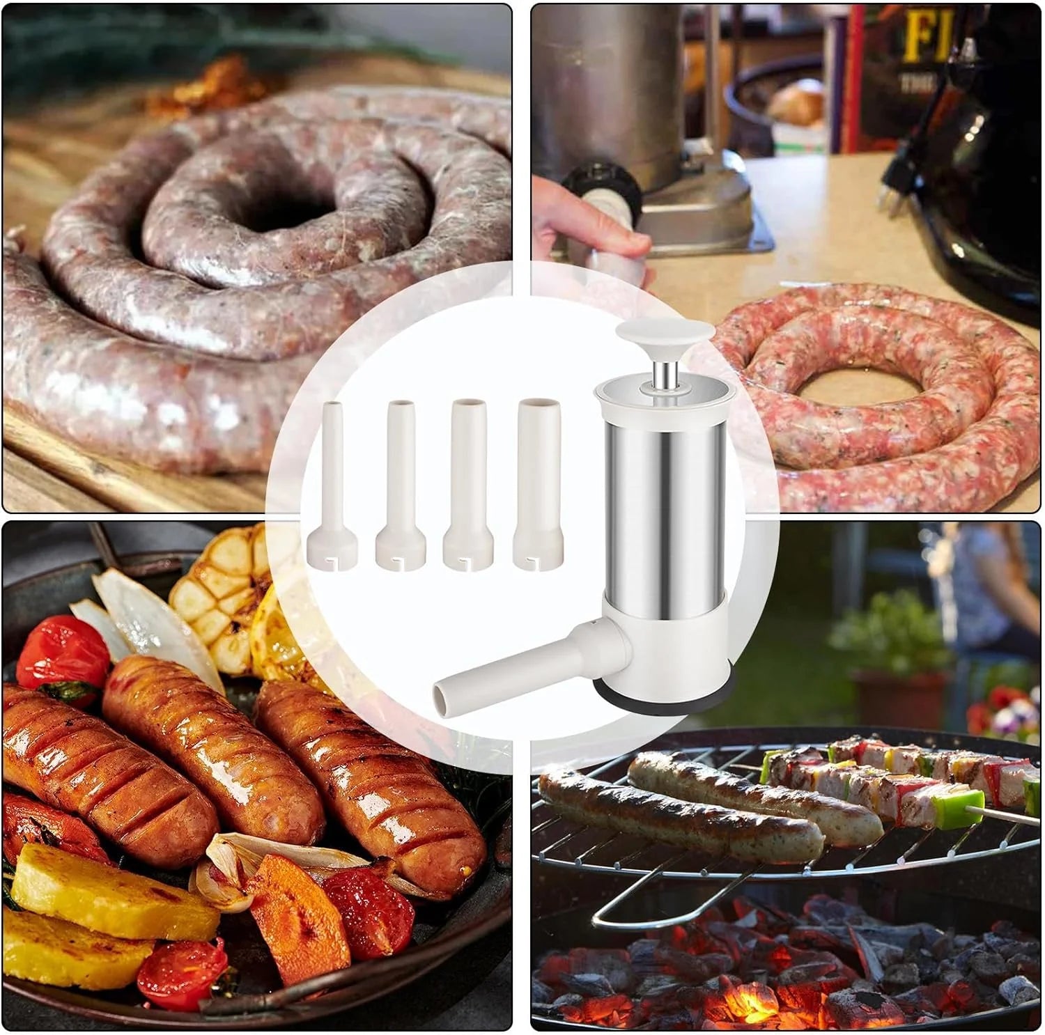 Sí, es muy versátil: con el accesorio moldeador puedes formar bolas (albóndigas o croquetas), y si usas el tubo dispensador puedes hacer embutidos como salchichas o chorizos sin necesidad de cambiar de aparato.