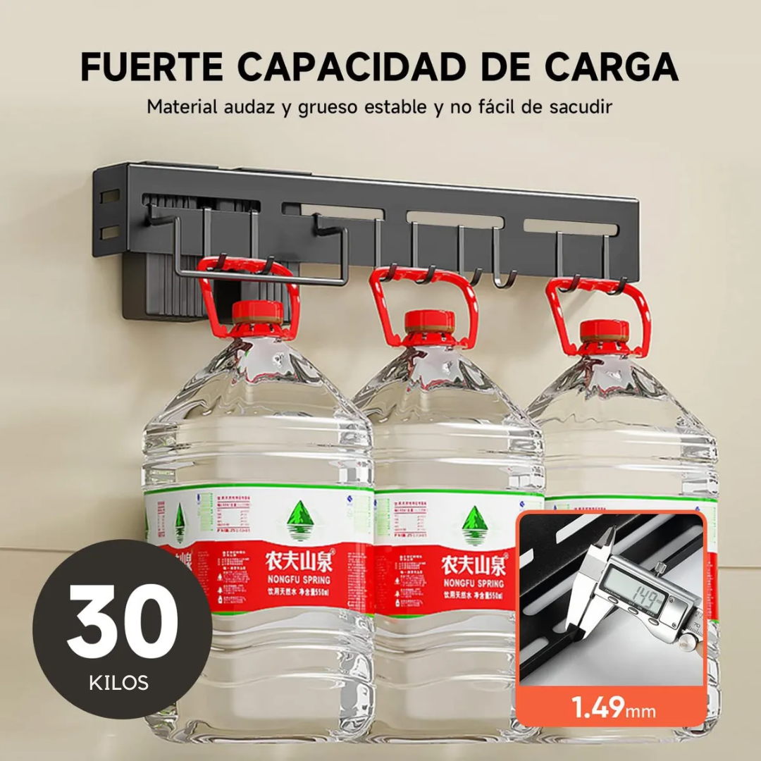Ganchos resistentes para colgar utensilios fácilmente, además de que soportan hasta 30 kilos.