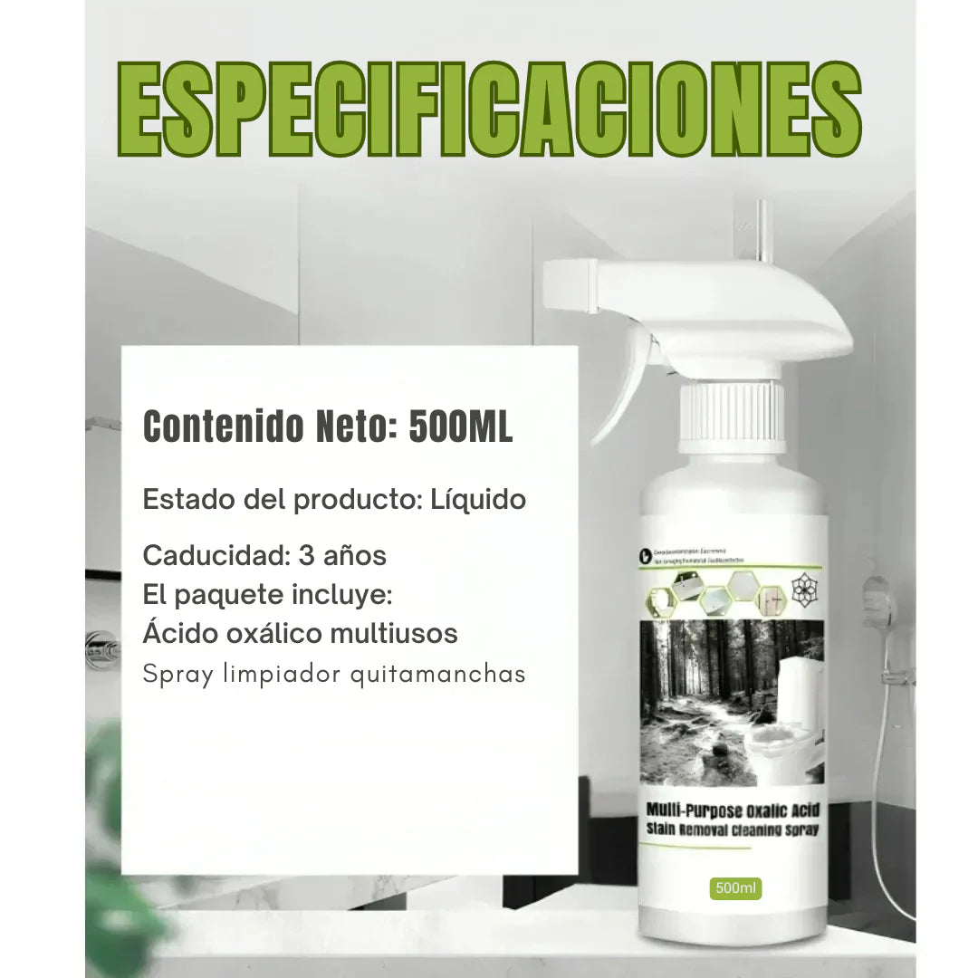 Este spray con ácido oxálico actúa profundo para disolver esas manchas difíciles, devolviendo su brillo y limpieza sin decapar ni dañar tus superficies.