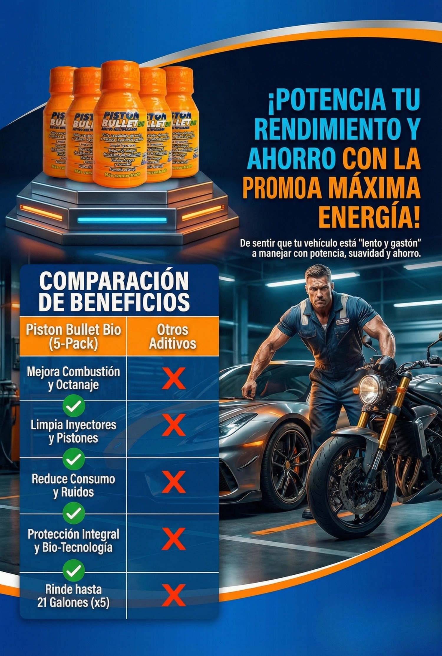 Aditivo Piston Bullet Bio PROMO X5 | 🛒 Máximo Rendimiento + Ahorro Garantizado ✅