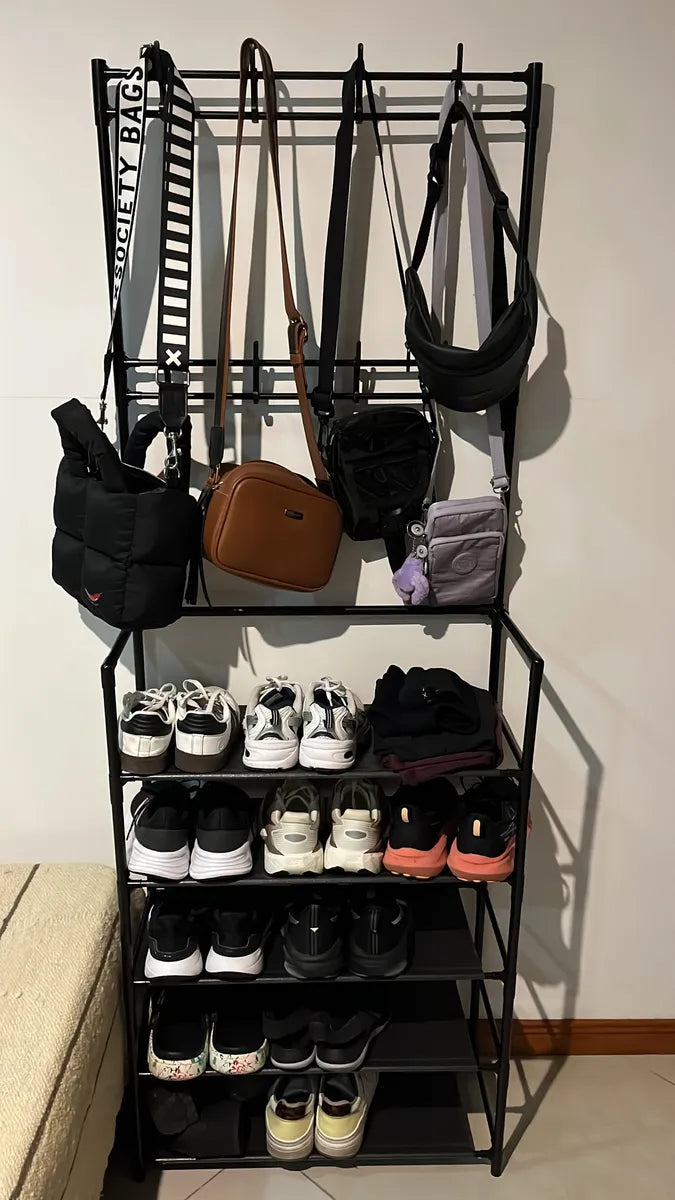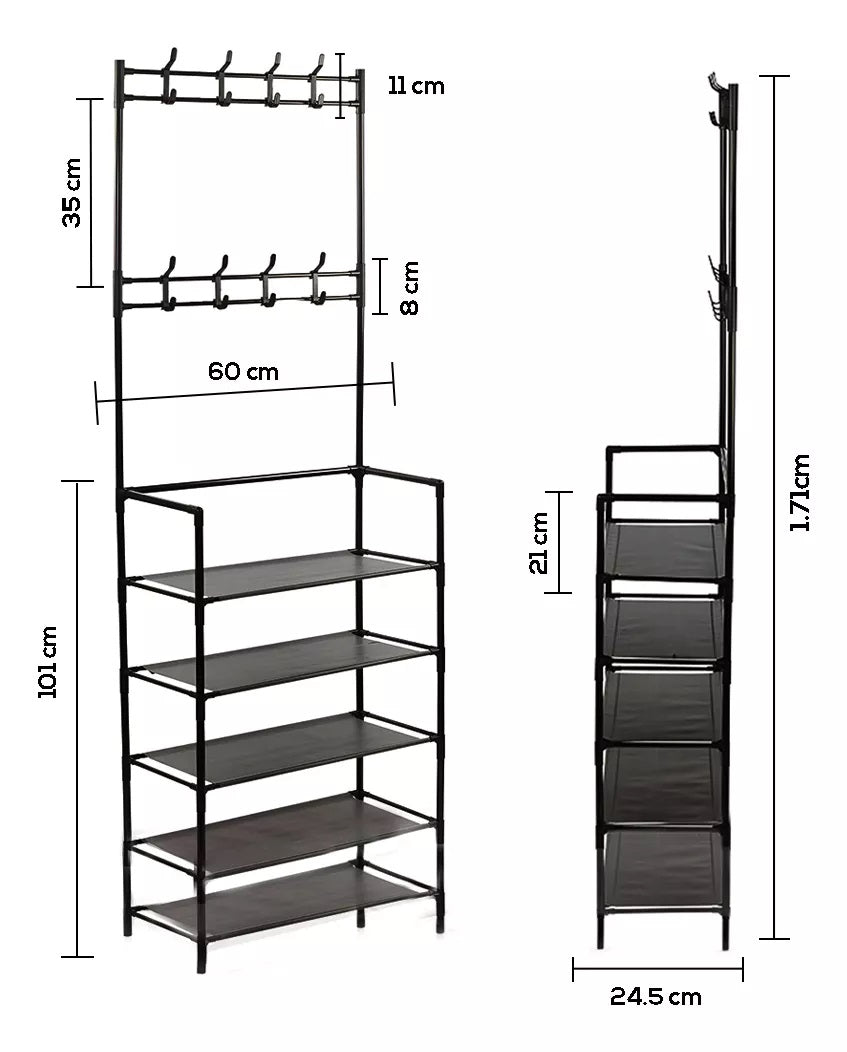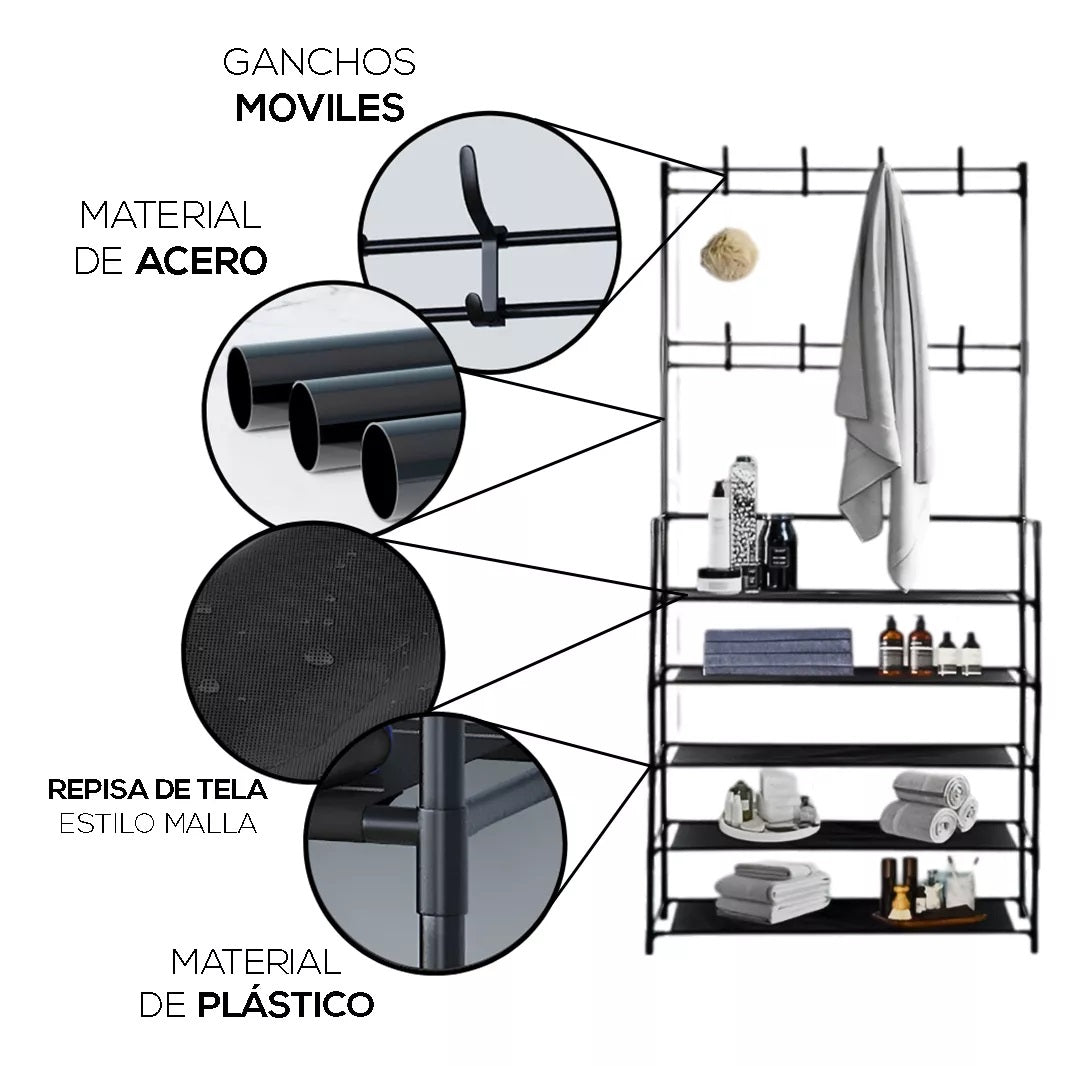Con el Zapatero Perchero Organizador de 5 niveles, mantienes zapatos, gorras, mochilas y chaquetas en un solo punto, logrando un ambiente más limpio y funcional desde el primer día.